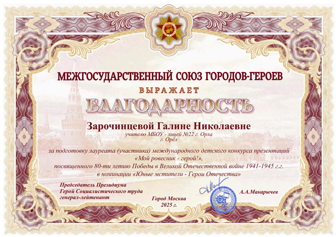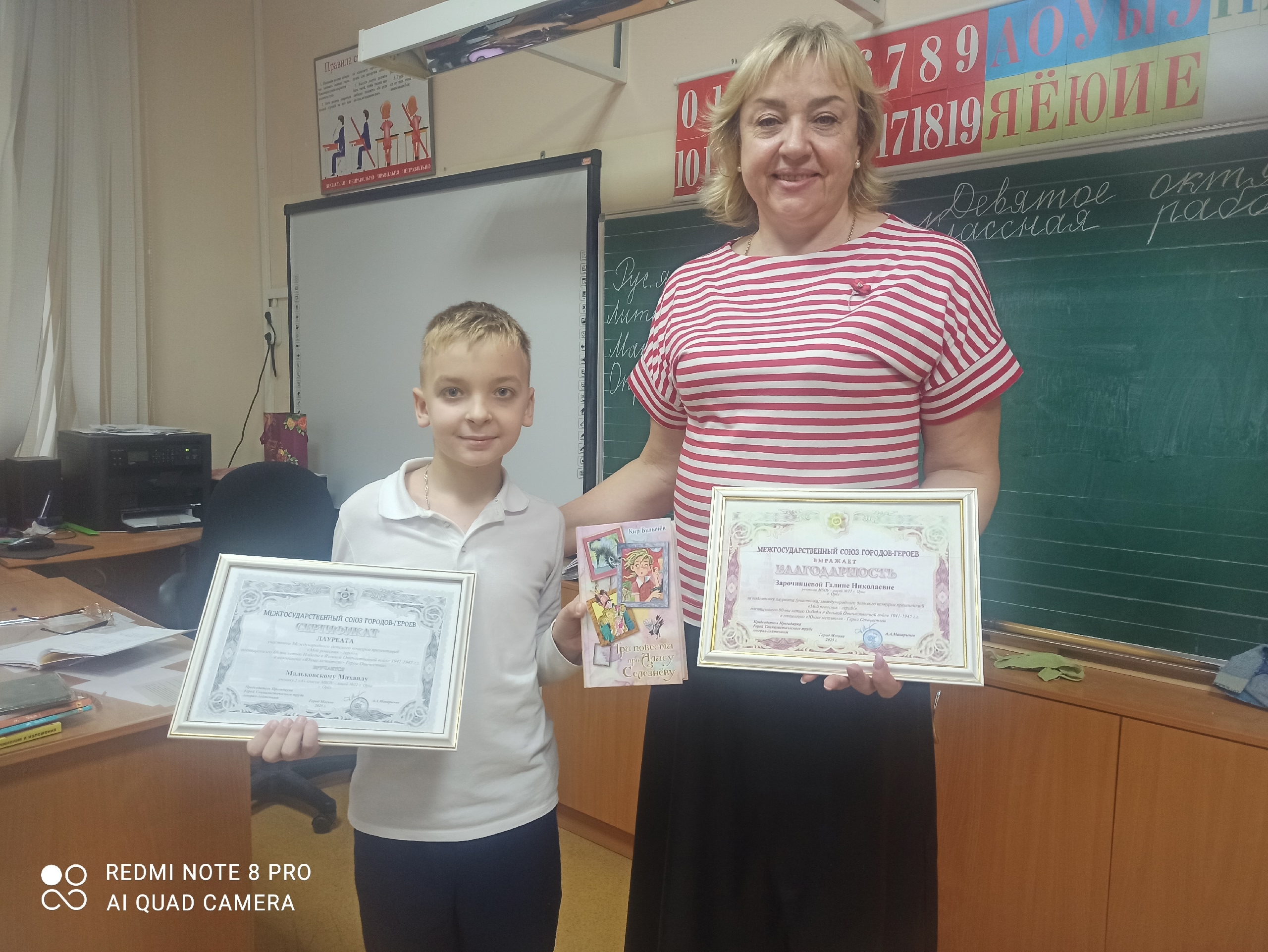 Также Благодарностью конкурса была отмечена учитель Зарочинцева Галина Николаевна, подготовившая своего ученика.