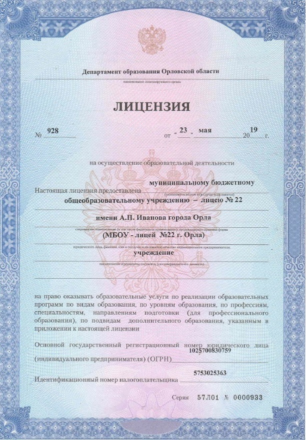 - Положение о правилах приема в муниципальное бюджетное общеобразовательное учреждение - лицей № 22 имени А.П. Иванова города Орла (изменения) (изменения 2) (изменения 3) (изменения 4)